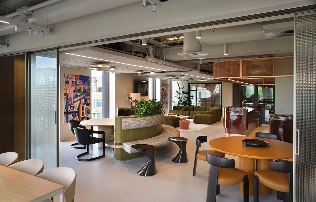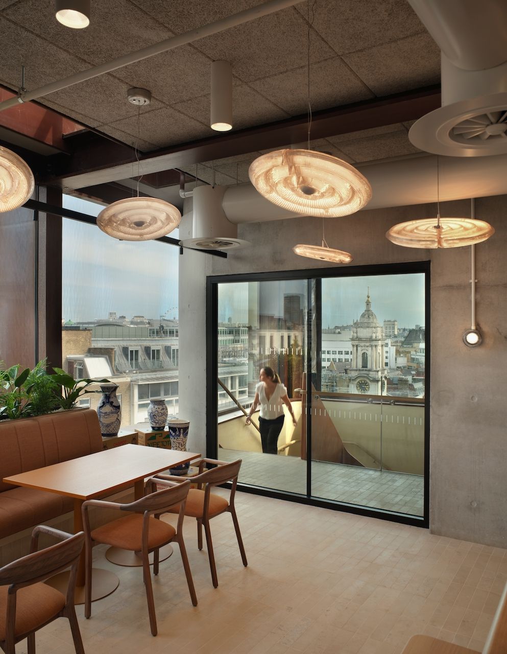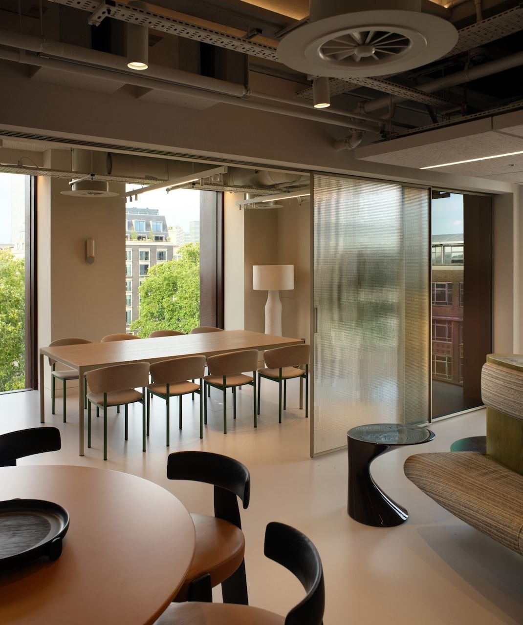 Throughout the building, ingenious interventions and materials combine, enhancing wellness and sustainability while inspiring creativity, collaboration, and joy. A new co-working reception welcomes occupiers and guests, while spa-style facilities reward active commuters. An elegant stair that functions as both the fire stair and main vertical circulation, winds up through the building, encouraging movement and creating connection.