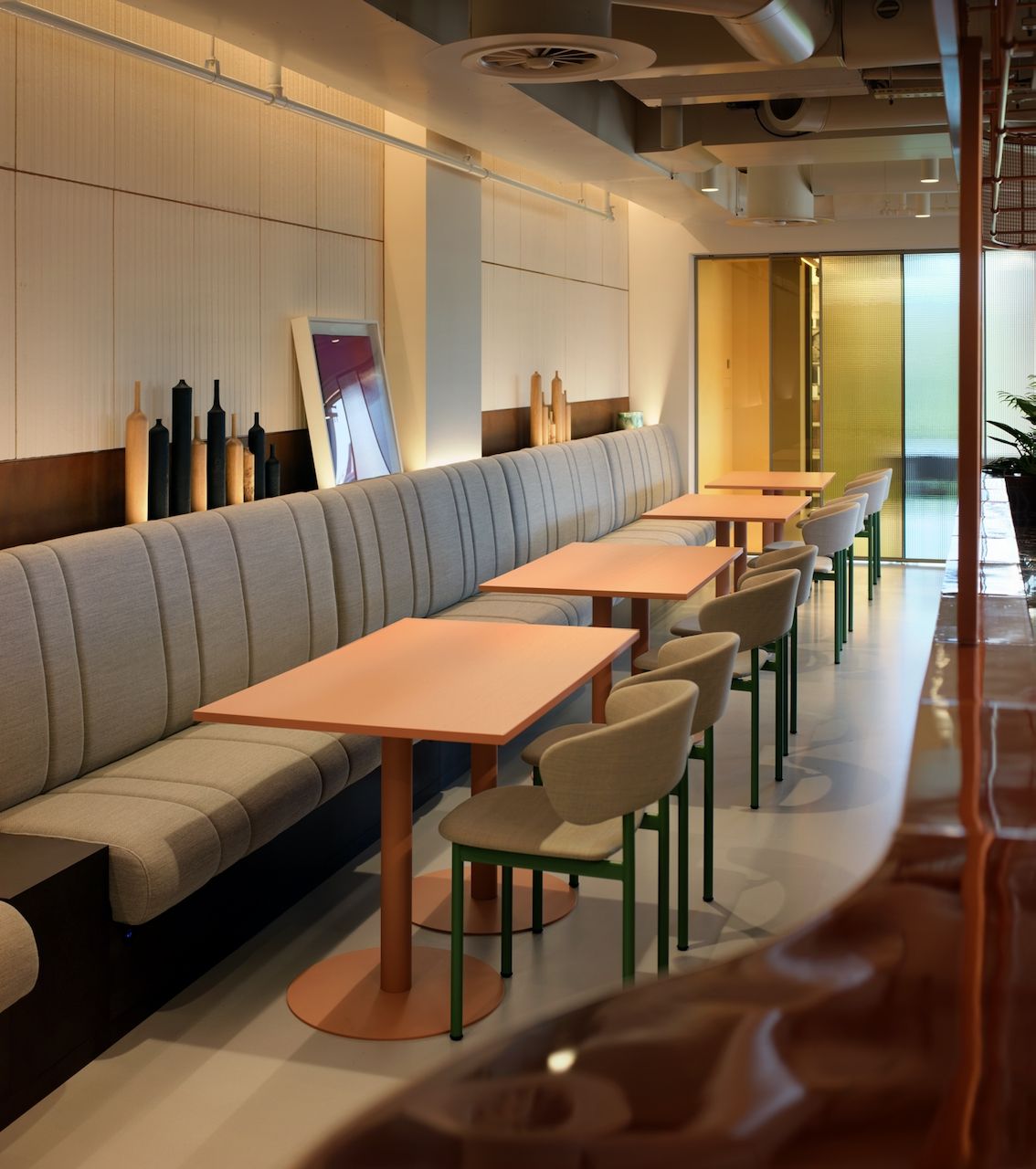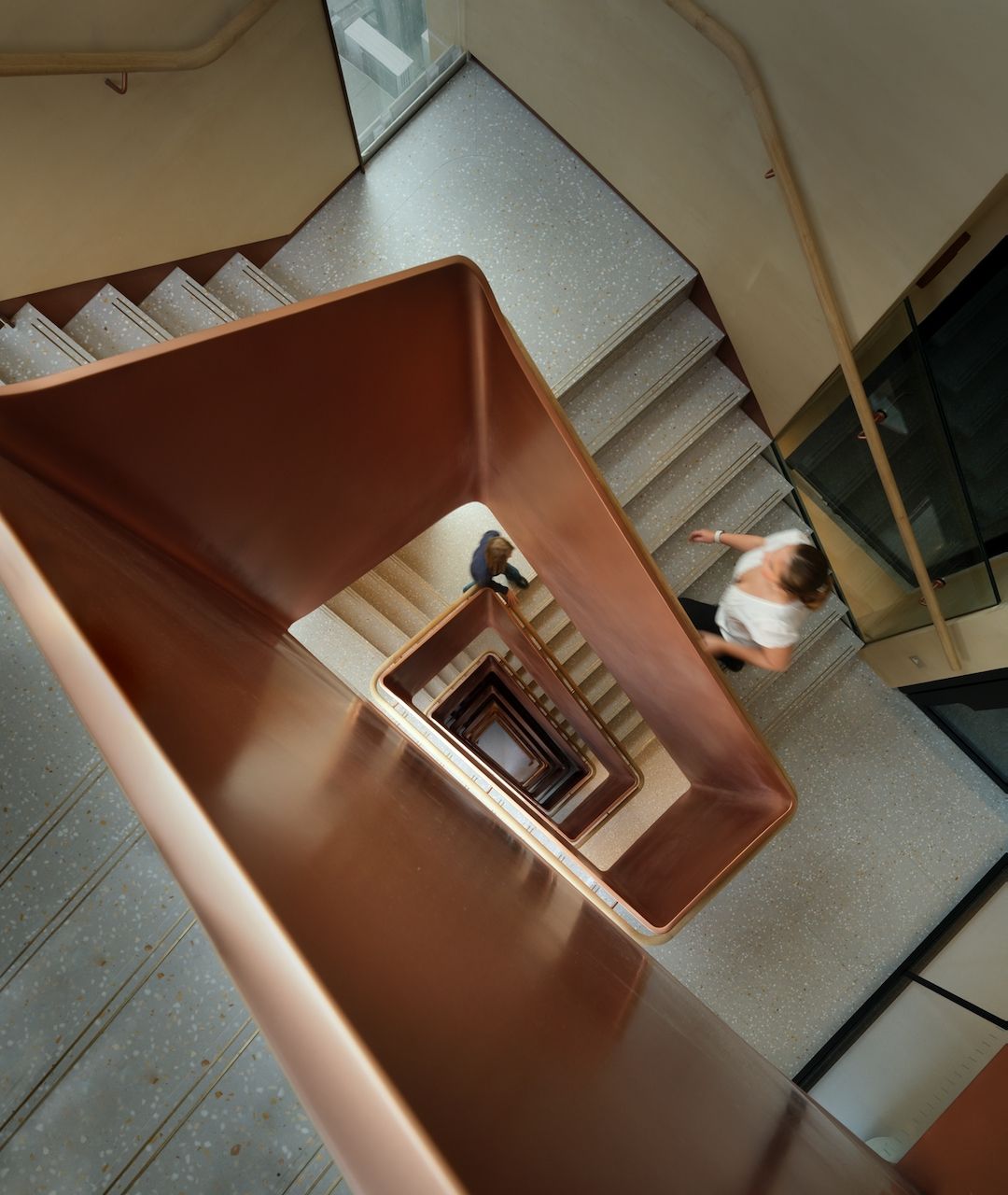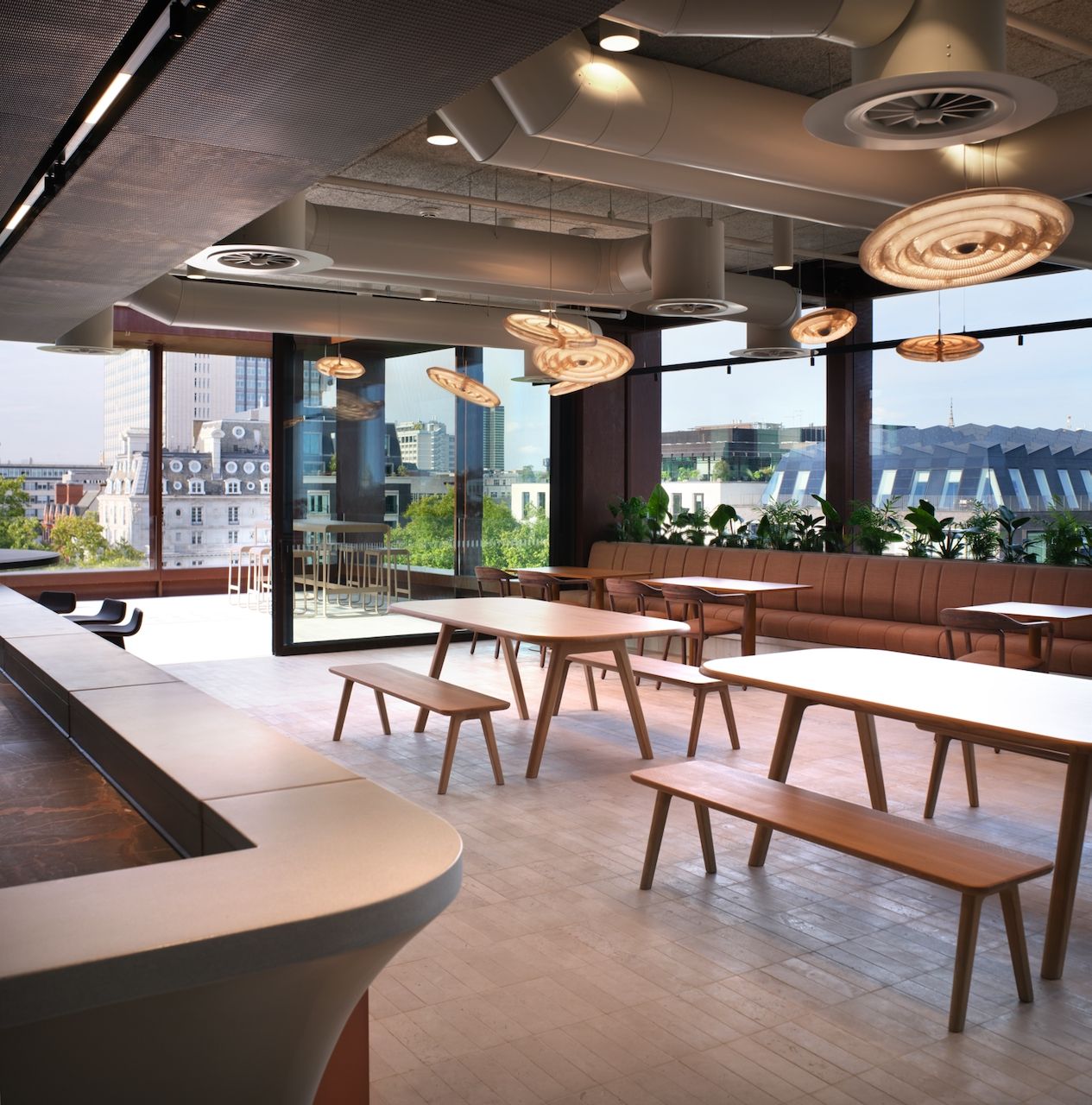 Throughout the building, ingenious interventions and materials combine, enhancing wellness and sustainability while inspiring creativity, collaboration, and joy. A new co-working reception welcomes occupiers and guests, while spa-style facilities reward active commuters. An elegant stair that functions as both the fire stair and main vertical circulation, winds up through the building, encouraging movement and creating connection.