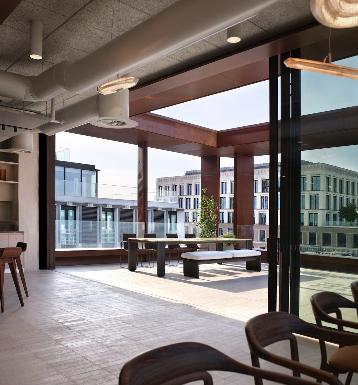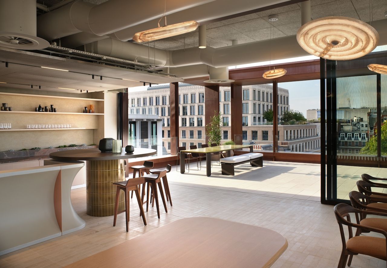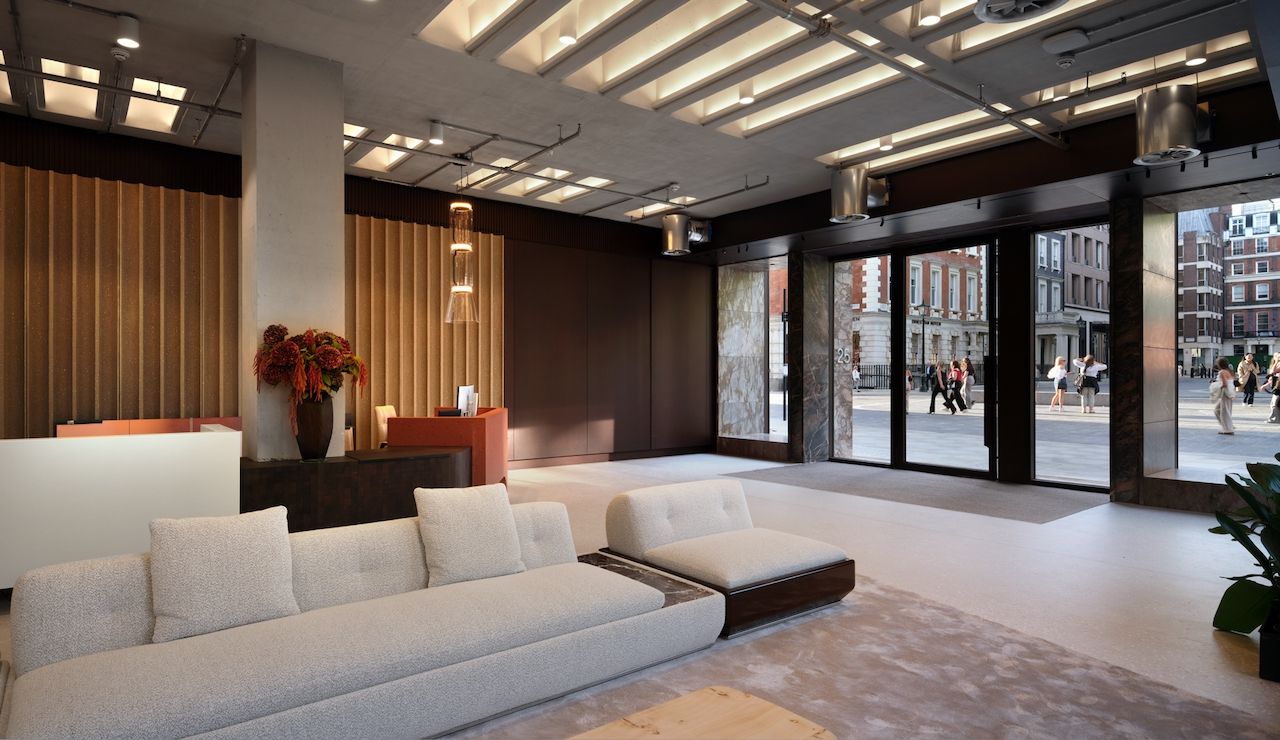 Communal spaces abound, not least the reworked 7th floor, which provides an entertainment space and terrace that crowns the building, offering incredible views over the historic roofscapes of Mayfair and the city beyond.